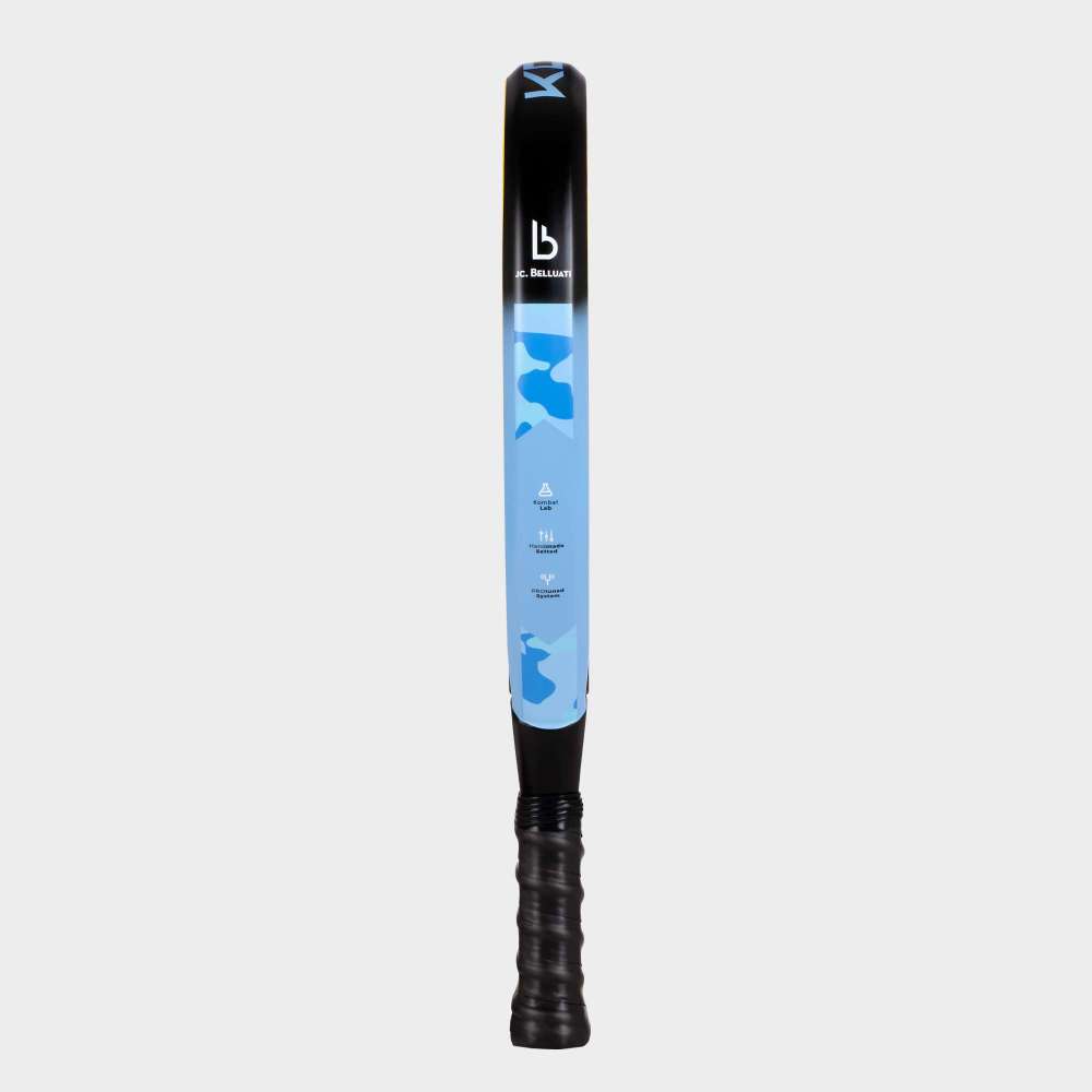 De formato diamante y balance alto, a esta pala la hemos dotado con carbono 12K y una gran salida de bola. También están de vuelta los planos rugosos con textura KOMBAT, para dotarla con control y efecto.